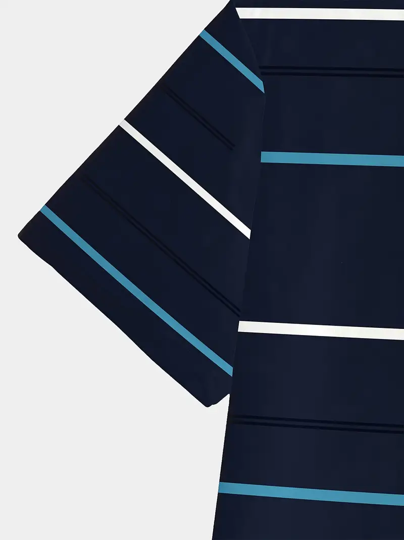 Men’s Striped Short-Sleeve Button-Up Shirt – Street Fashion Summer Print, Casual Golf Style